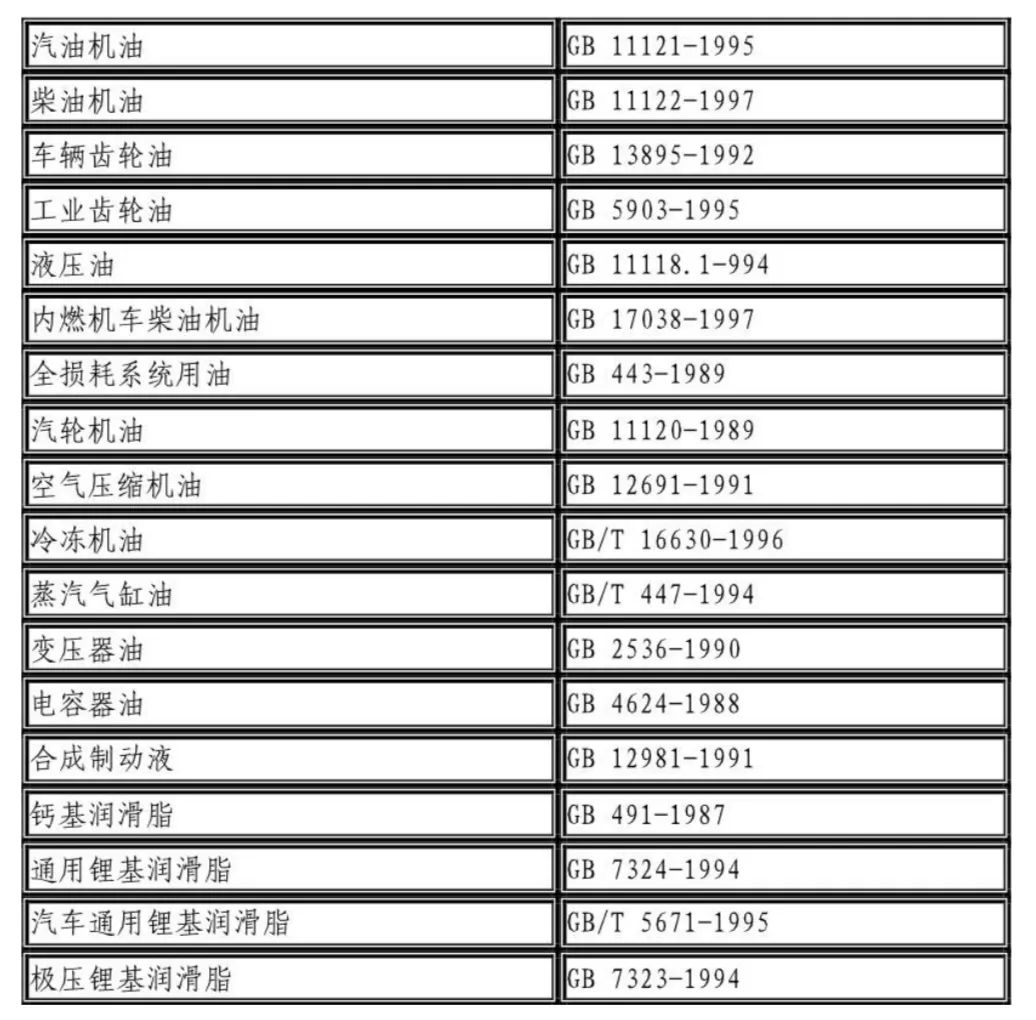 潤滑油(脂)規(guī)格標(biāo)準(zhǔn)